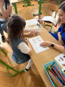 Na dalším stanovišti paní učitelka zjišťovala, jak děti umí počítat, jaké mají základní informace o sobě a své rodině, přednesly básničku, předvedly správný úchop tužky a zavázání tkaničky na botě. Na závěr si každý malý školáček odnesl památku v podobě fotografie z fotokoutku.