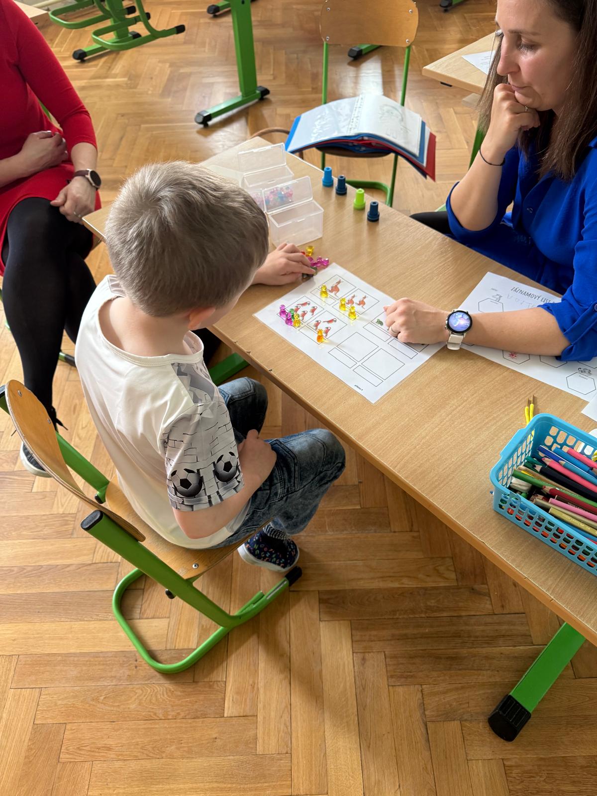 Budoucí prvňáčci dorazili v doprovodu svých rodičů. Mezitím než rodiče vyplnili potřebné dokumenty, tak na děti čekal pestrý program, který jim pomohl zbavit se trémy a zároveň hravou formou ukázal, co všechno už zvládnou. V tělocvičně si děti mohly s chutí zaběhat na připravené překážkové dráze a následně se s paní učitelkou pustily do objevování geometrických tvarů a prostorové orientace. Nechyběl ani podpis jejich vlastního záznamového archu.